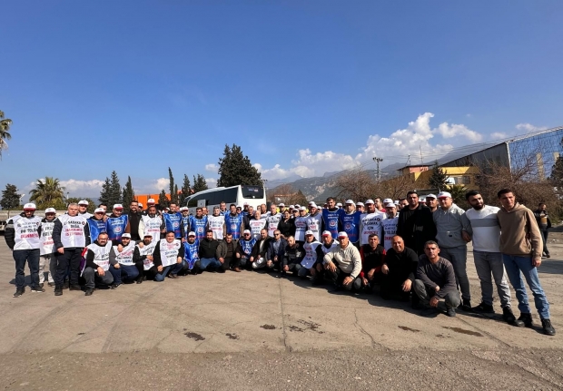 Özçelik-İş Sendikası Genel Başkan Yardımcıları Bayram Altun, Şerafettin Koç, Genel Sekreter Ahmet Çolak, İskenderun Şube Başkanı Mehmet Güngör ve şube yönetimi ile Yolbulan işçileri ve Özçelik-İş İskenderun teşkilatı, 17 Şubat 2025 tarihinde fabrika önünde bir araya gelerek, Ankara'ya hareket öncesi basın açıklaması yaptı.