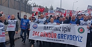 “Direne direne kazanacağız”, “İşçi sendika omuz omuza” “Yolbulan işçisi direnişin simgesi’ sloganları atan işçiler, yağan yağmura aldırış etmeden, taleplerini dile getirdi.