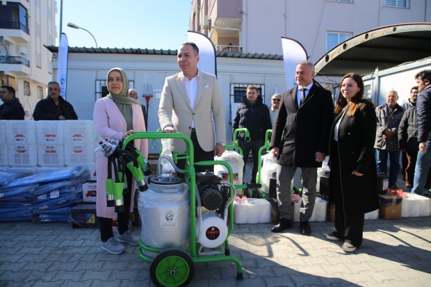 Büyükşehir, “Hatay Ayağa Kalkıyor” sloganı ile il genelinde tarım sektörünün kalkınması amacıyla yürütülen proje kapsamında toplamda 282 süt sağım makinesi ve hijyen seti, 310 zeytin hasat setinin yanı sıra 5 bin 580 zeytin kasası dağıtımını yaptı.