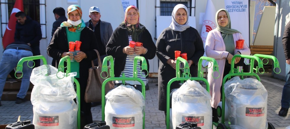 HBB; Hatay Valiliği ve Tarım ve Orman İl Müdürlüğüyle ortaklaşa yürüttüğü “Gübre, Zeytin Hasat Seti ve Süt Sağım Makinesi Dağıtım Projesi” kapsamında 15 ilçede çiftçilere ekipman desteği sağladı.