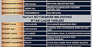Ayrıca 7 Mart Cuma günü Yayladağı Belediyesi Önü, 11 Mart Salı Günü Samandağ Spor Salonu, 14 Mart Cuma Altınözü Spor Salonu, 15 Mart Cumartesi Kumlu Fevzi Çakmak Mahallesi Düğün Salonu, 17 Mart Pazartesi Belen Fatih Mahallesi Doğa Park Düğün Salonu, 20 Mart Perşembe Hassa Girne Mahallesi Spor Salonu, 21 Mart Cuma Erzin Hürriyet Mahallesi Spor Salonu, 22 Mart Cumartesi Payas Sokullu Mehmet Paşa Külliyesi, 24 Mart Pazartesi Arsuz Konacık Mahallesi ve 29 Mart Cumartesi Defne ilçesinde bulunan EXPO Çadır’ında kuracağı iftar sofraları ile iftarlarını yapmak isteyen vatandaşlara sıcak yemek verecek.